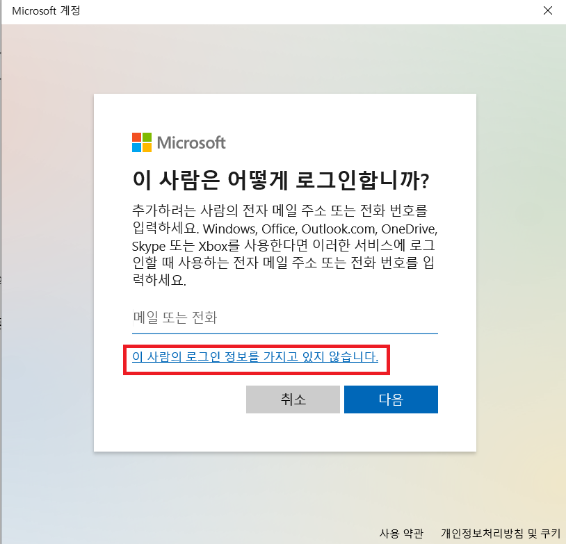3. 그냥 빈 계정을 만들 거니까 메일 계정을 넣으면 안 된다! 그럼 기껏 지우는 의미가 없슴... 빨간 네모칸을 클릭해서 계정을 만들어 준다.