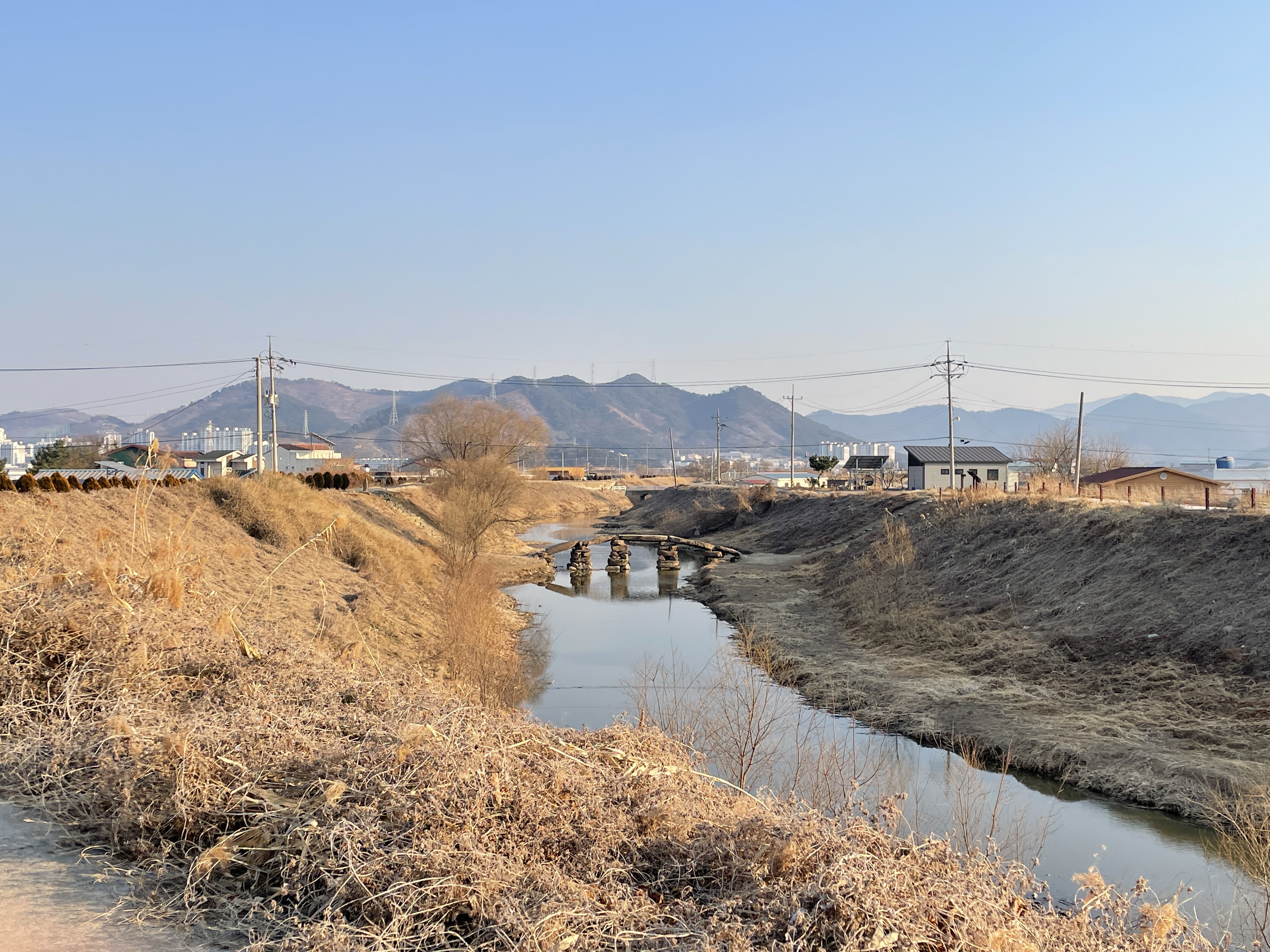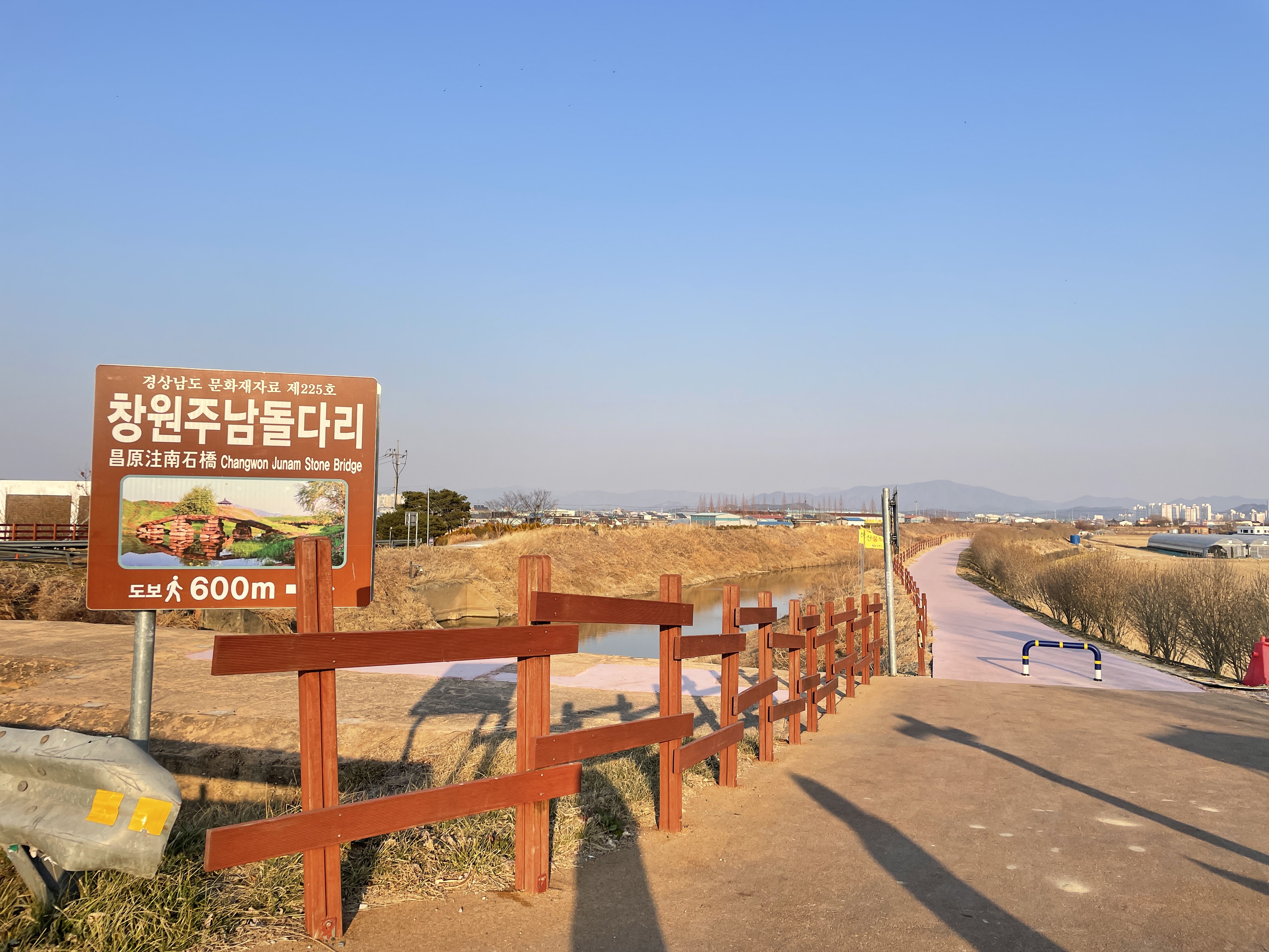 강 건너 왼쪽으로 보이는 길로 들어가서 주남돌다리를 건너고