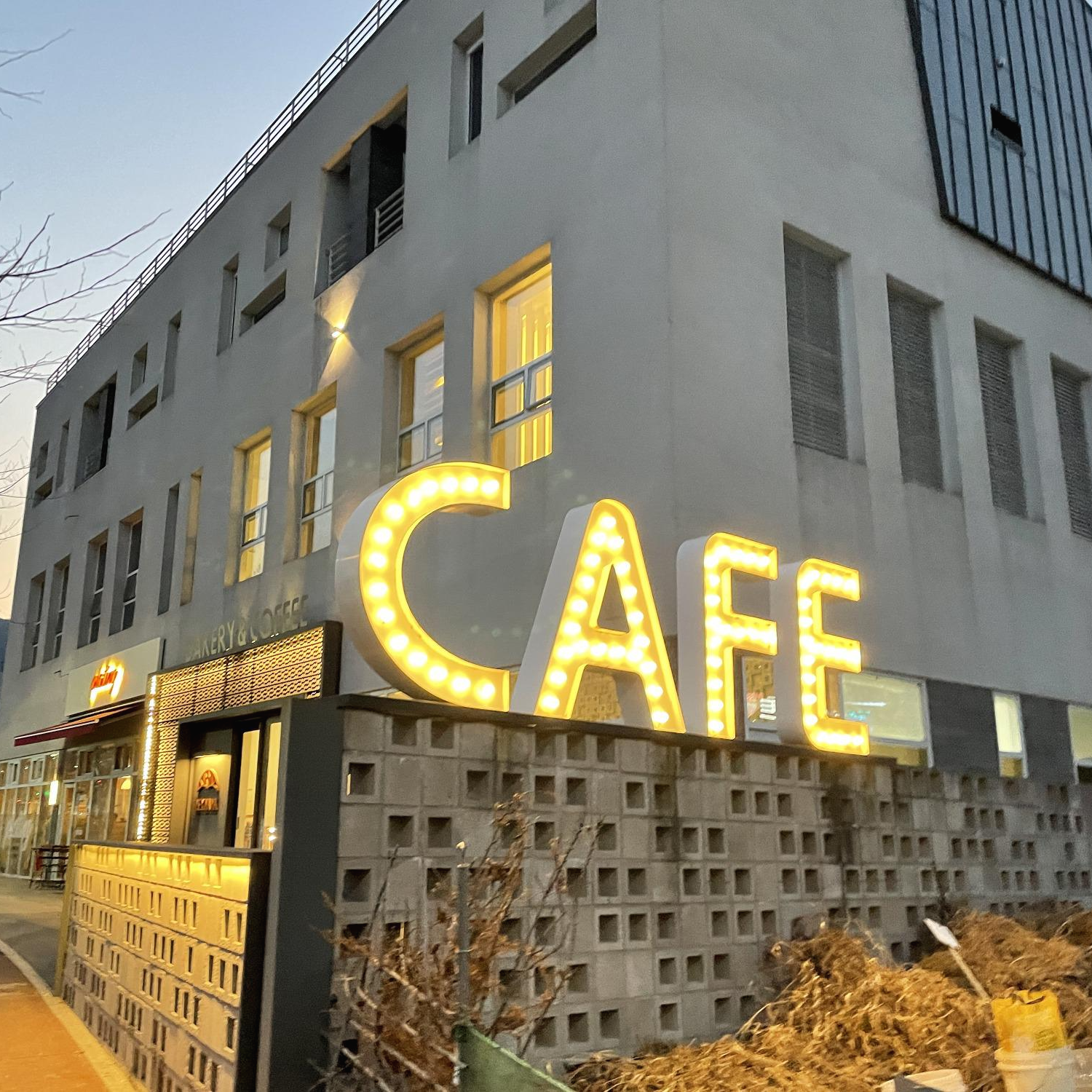 춥고 밤이라서 잘 모르겠지만 야외 테이블도 있는 듯 했다.