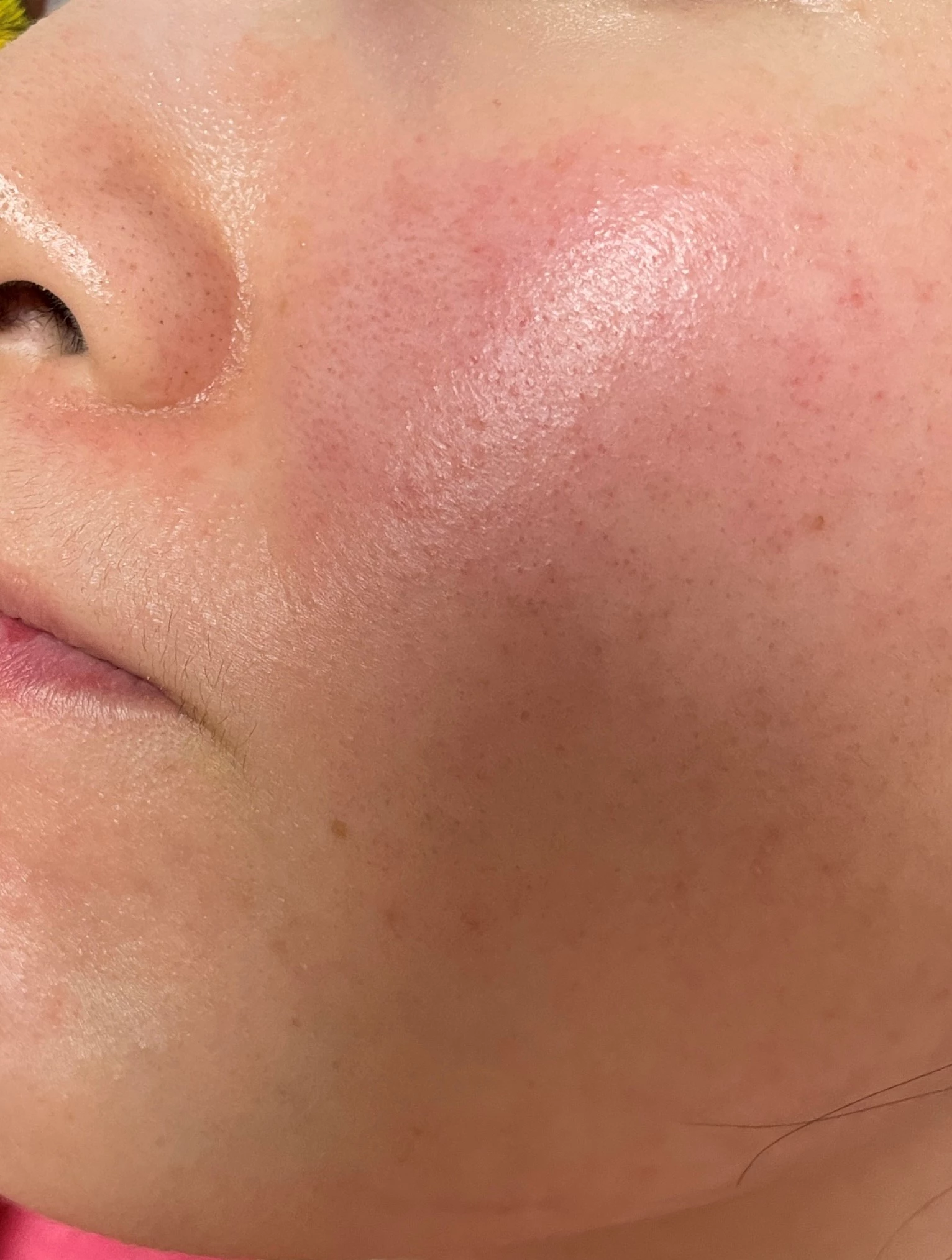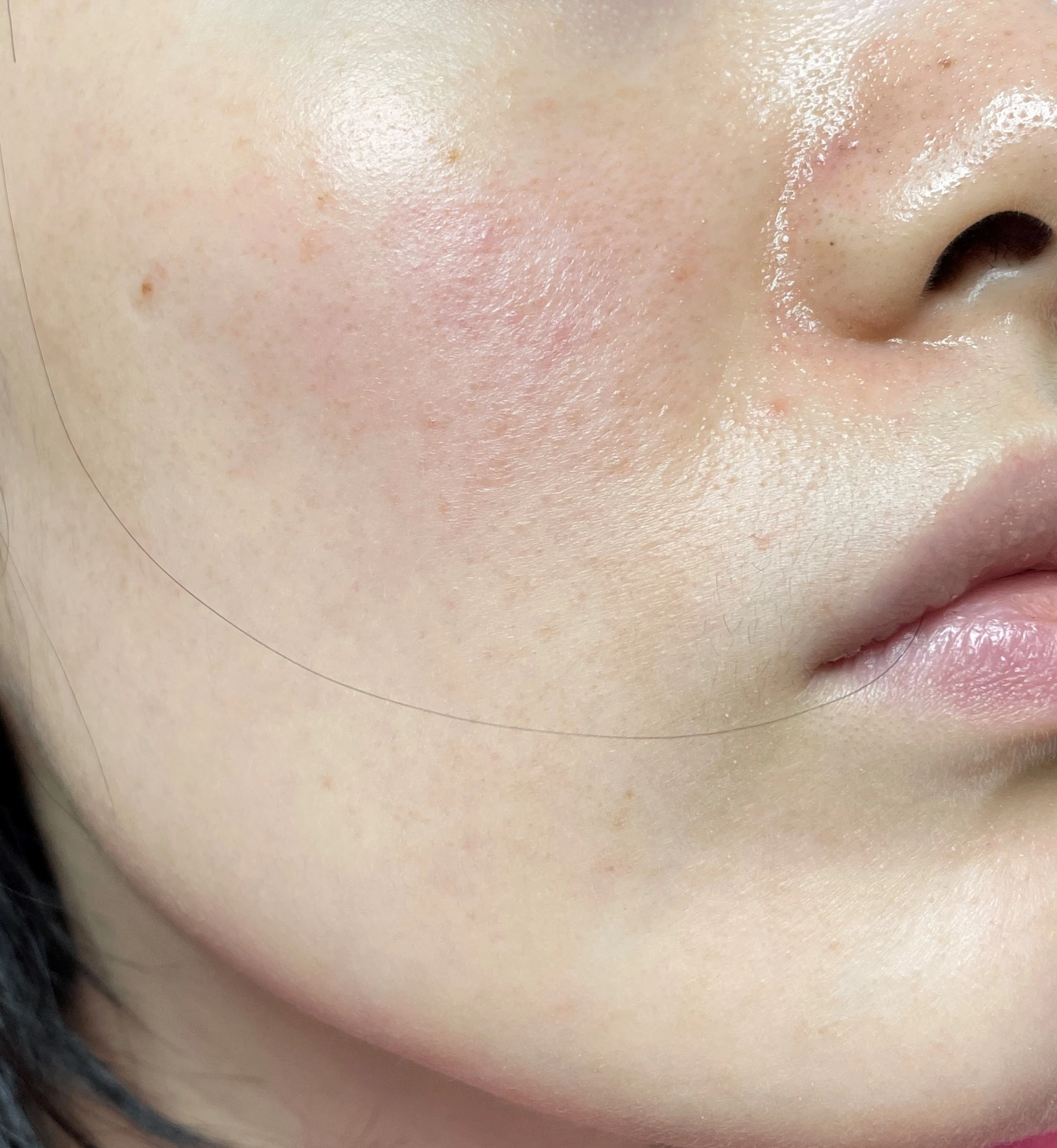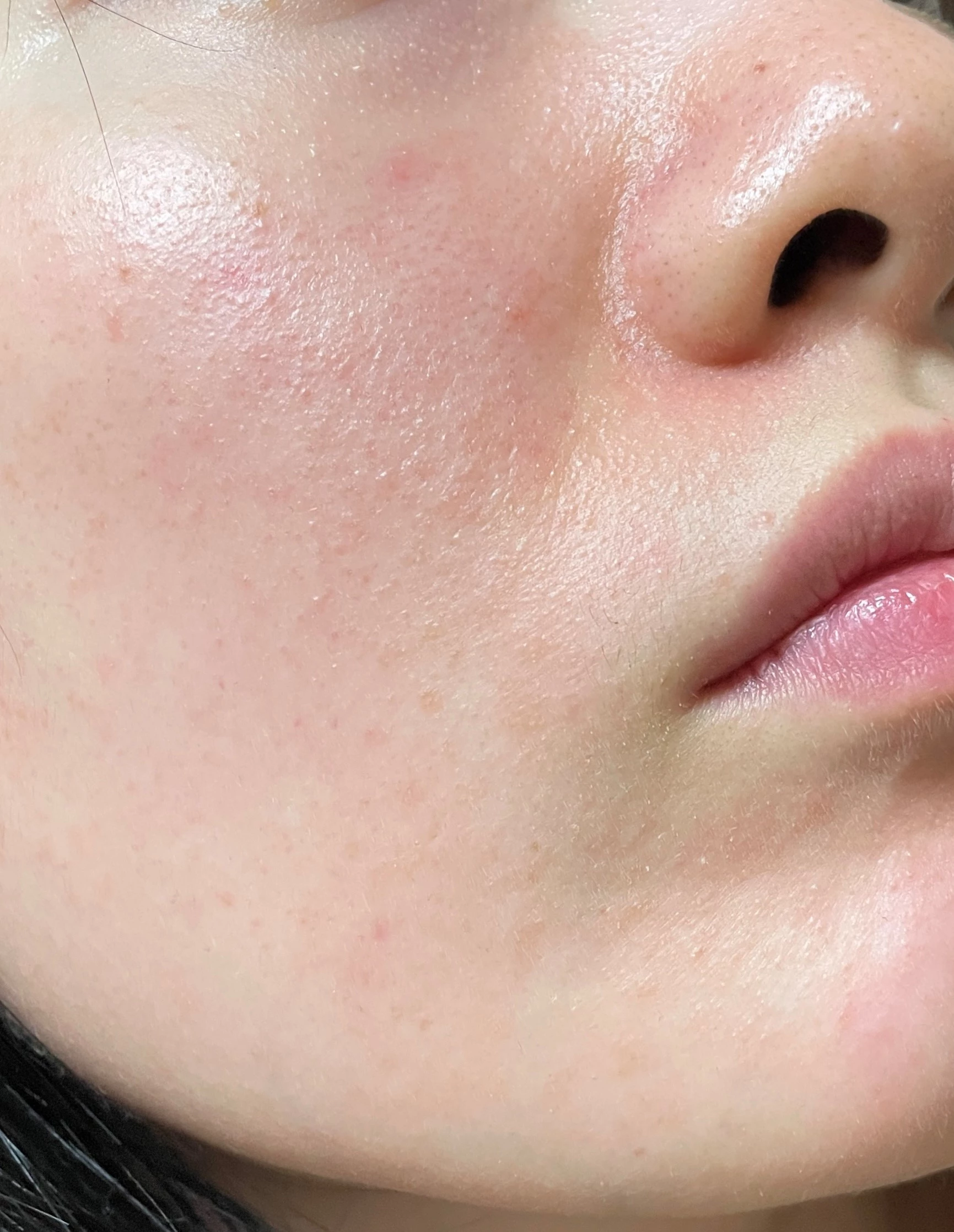 수란트라 바르기 전 사진이다. 이 사진을 찍고 병원에 가야겠다는 마음이 들었다. 잘라내기가 힘들어서 볼 말고 다른 부위 사진은 없지만 턱이나 이마가 더 심했다. 그리고 볼에 있는 저 빨간색 점점점.... 같은걸 꼭 없애고 싶었다.